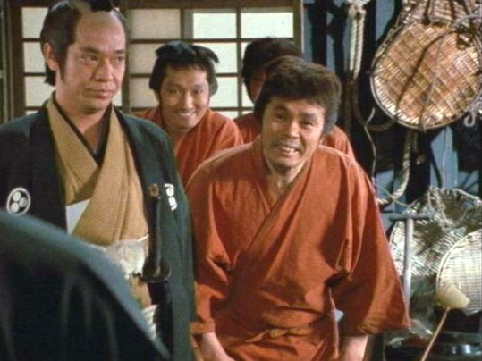 | 「痛快!河内山宗俊」の「第11話 男が泣いたわらべ唄」(1975年)の橋本和博。右端の人。 |