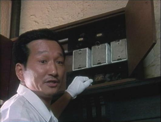 | 「死をよぶ猫は金の爪 −人形佐七捕物帖−」(1984年)の橋本和博らしき人。 |