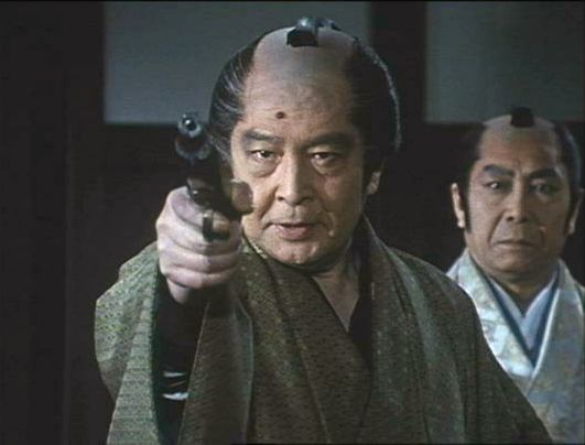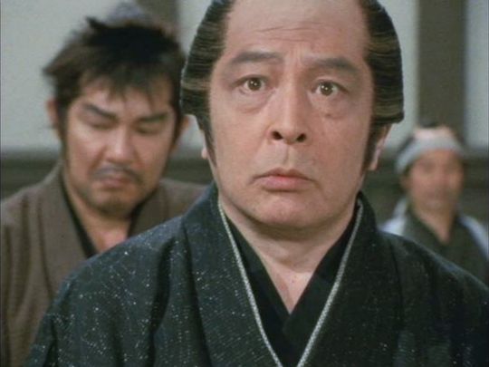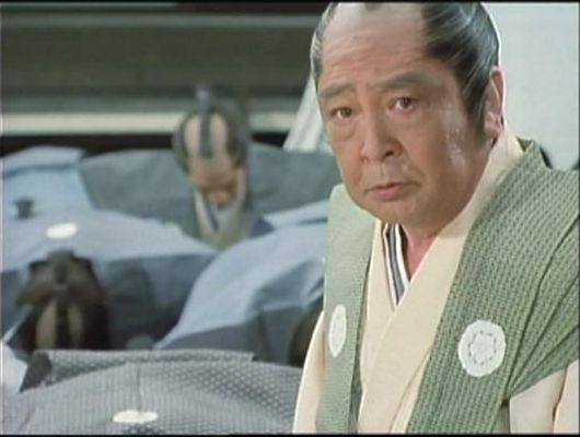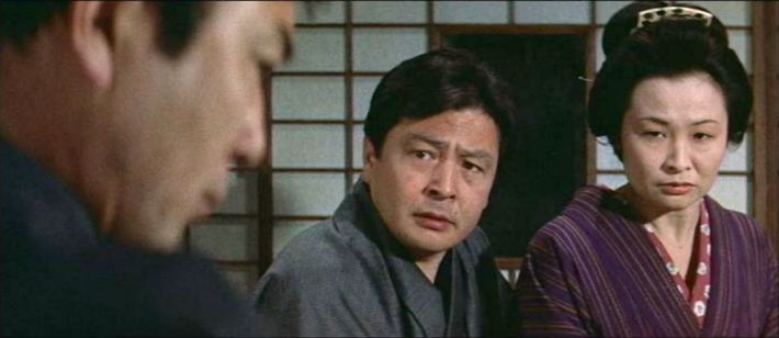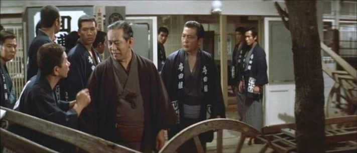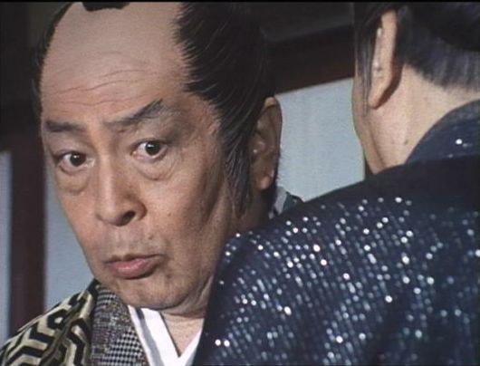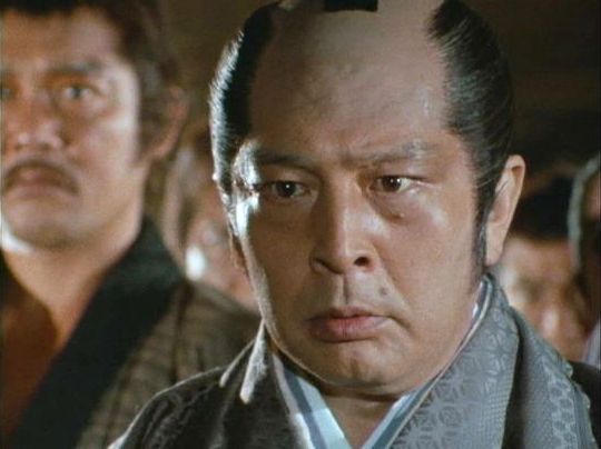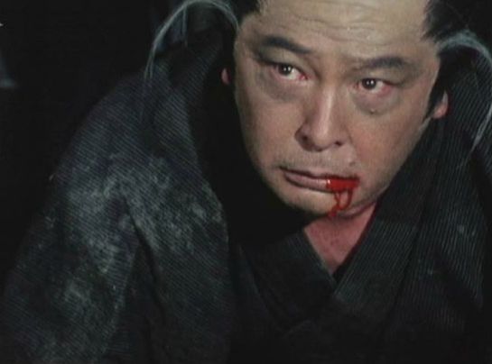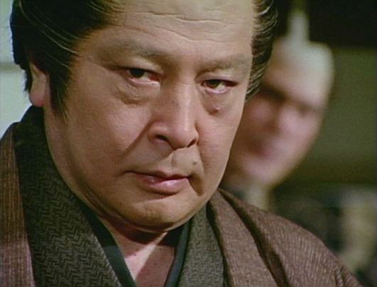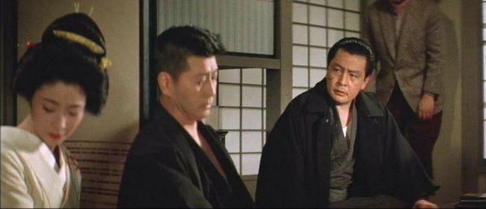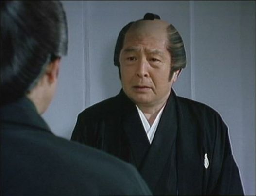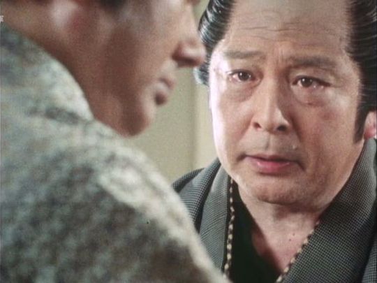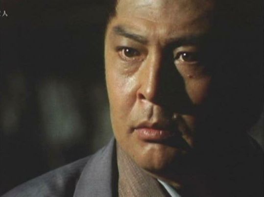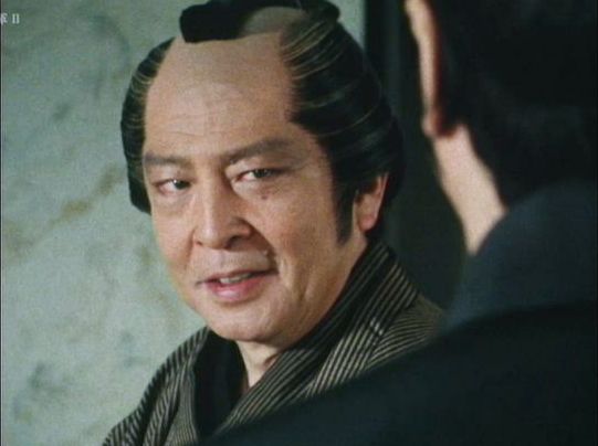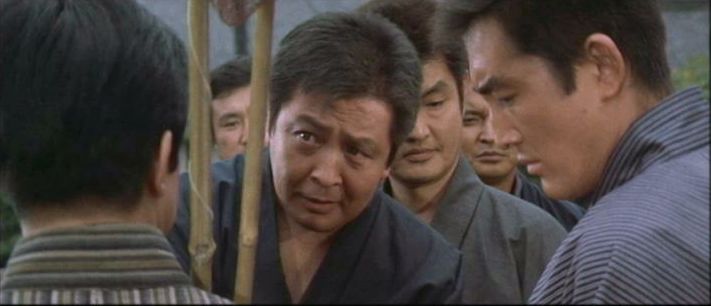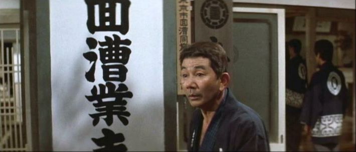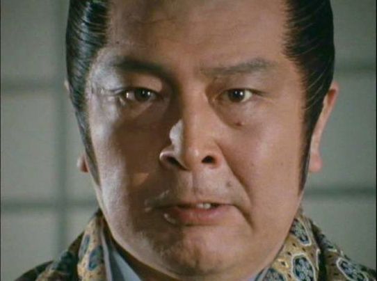 | 映画「昭和残侠伝 死んで貰います」(1970年)の高野真二。左手にクレジットなしで出ている由利徹が見える。 |