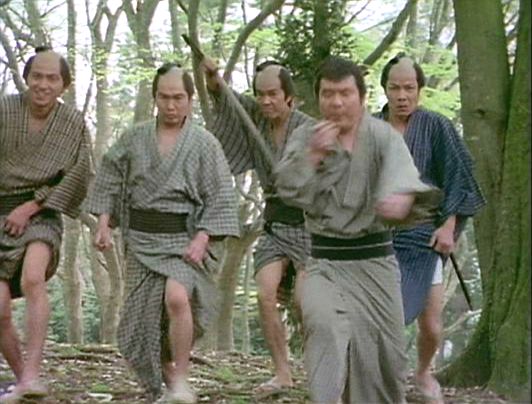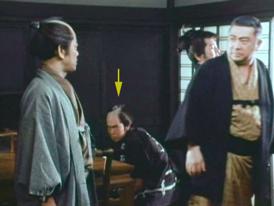 | 「桃太郎侍」の「第121話 すずめの剣術修業」(1979年)の原田逸夫らしき人。右端の人。 |