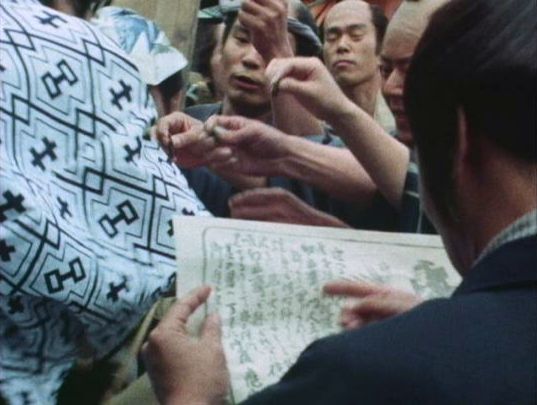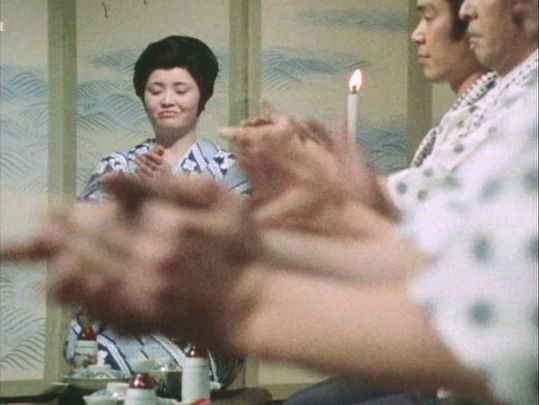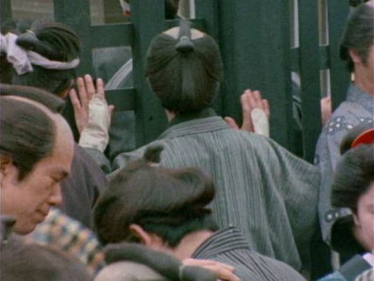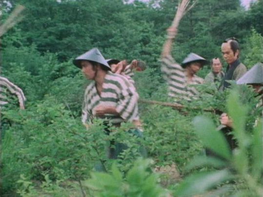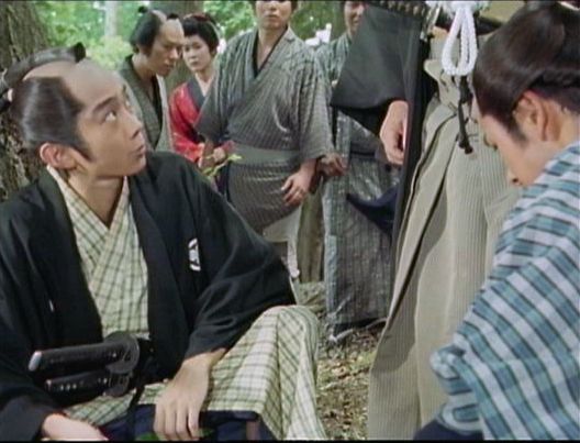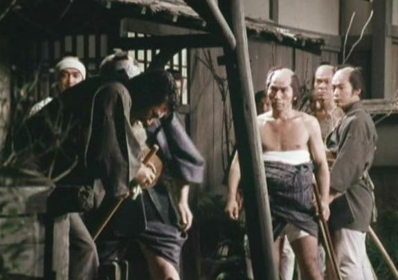 | 「座頭市物語」の「第8話 忘れじの花」(1974年)の原田逸夫らしき人。左端の人。 |