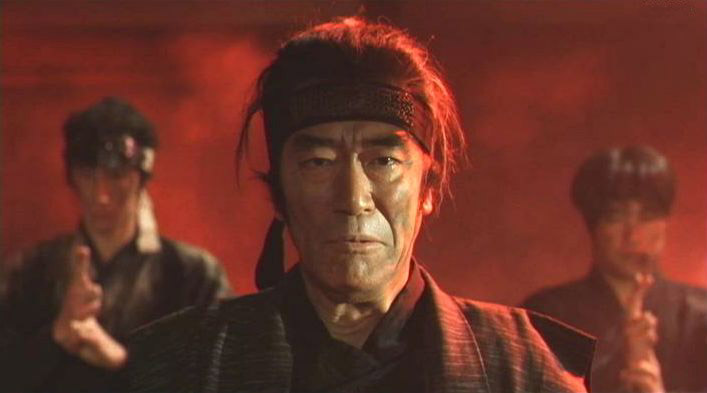 | 映画「梟の城」(1999年)の中村敦夫。ナレーションも。 |