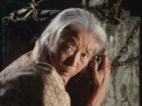 | 映画「魔界転生」(1981年)の岡島艶子。クレジットあり。冒頭のさらし首もそうらしい。 |