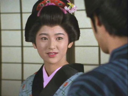 | 「続・三匹が斬る!」の「第18話 さらば三匹 今宵大江戸の露と消ゆ?!」(1989年)の武田京子。 |