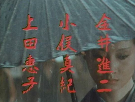 | 「桃太郎侍」の「第7話 つばめの詩」(1976年)。クレジットあり。色が赤いのは演出。 |
