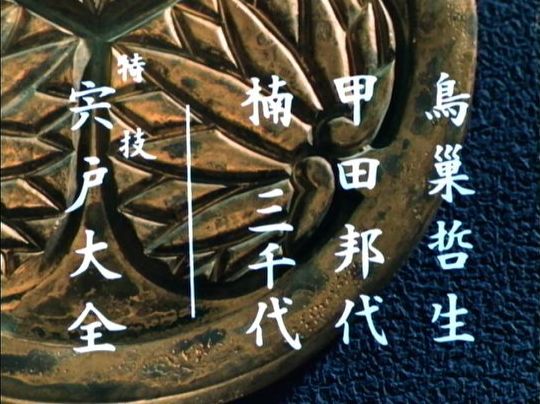| 「水戸黄門(第5部)」の「第4話 黄門さまのおまじない」(1974年)の楠三千代。クレジットあり。 |