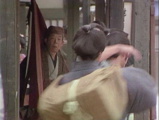 | 「水戸黄門(第6部)」の「第11話 黄門さまの縁むすび」(1975年)。右端にちらり。 |